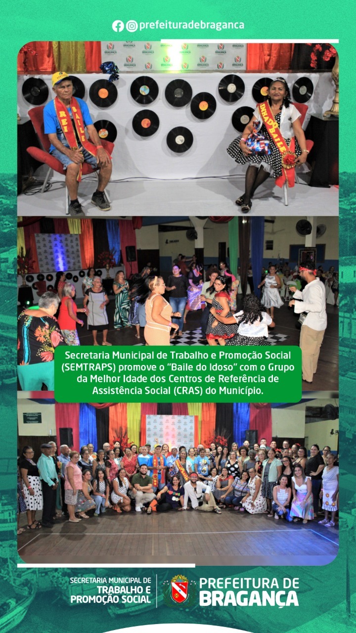 Prefeitura Municipal de Bragança por meio da Secretaria Municipal de Trabalho e Promoção Social (SEMTRAPS) e a Coordenação da Proteção Social Básica através dos quatro Centros de Referência de Assistência Social (CRAS), Marujada, Caeté, Ajuruteua e Sapucaia, promoveu na noite desta quinta-feira (6) na sede social do Lions Clube (centro) o “Baile do Idoso” e proporcionar um momento de diversão e lazer ao Grupo da Melhor Idade do Serviço de Convivência e Fortalecimento de Vínculos (SCFV).