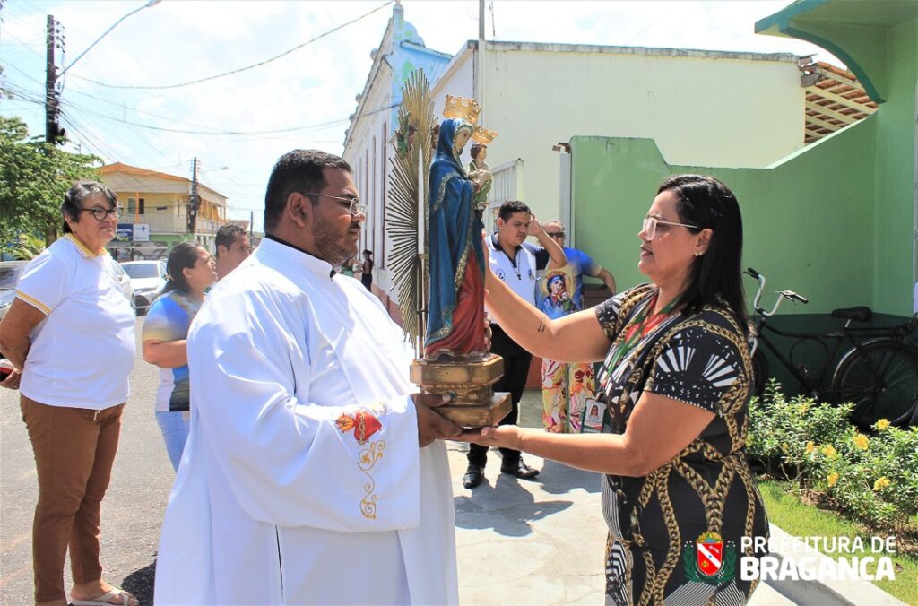 Prefeitura de Bragança por meio da Secretaria Municipal de Trabalho e Promoção Social (SEMTRAPS) recebe a Imagem Peregrina de Nossa Senhora do Perpétuo Socorro em virtude das Celebrações de sua Festividade este ano com o tema: “Maria, Discípula e Mestra” na manhã desta quinta-feira (22), no hall de entrada da Secretaria de Assistência Social.
